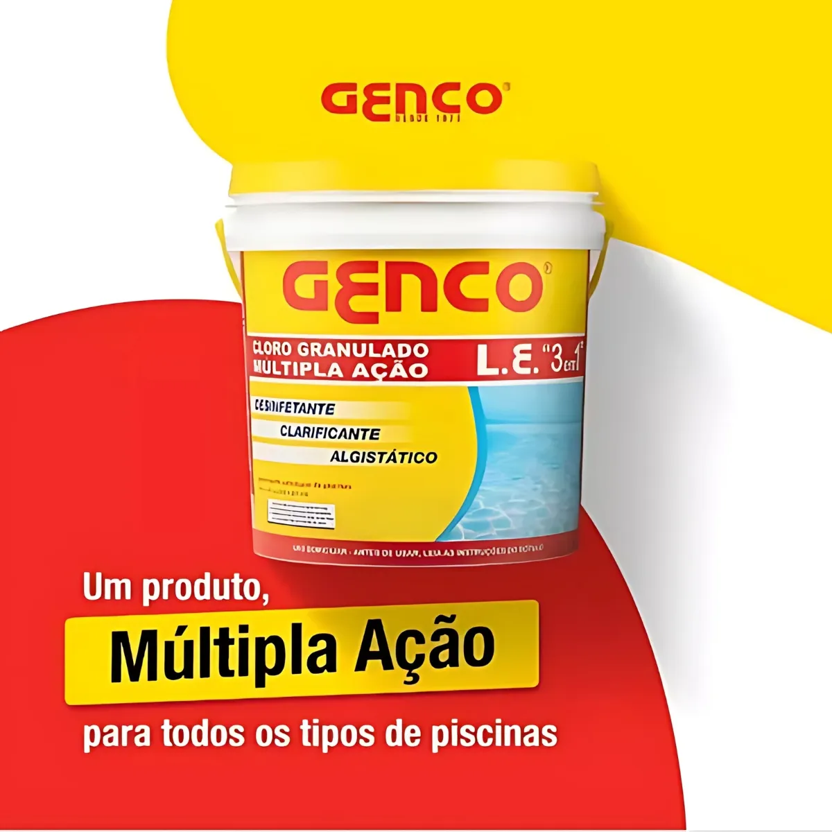 Genco 3 Em 1 Múltipla Ação Balde 10kg Cloro Para Piscina 4 Níveis de dosagem #039