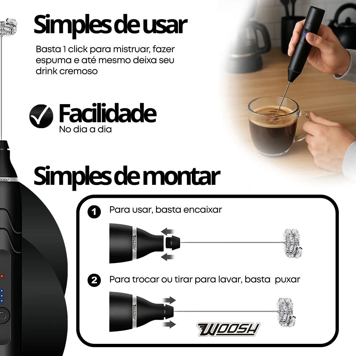 Misturador de Bebidas e Ovos Portátil Elétrico Mixer 2 em 1 Cor Preto Woosh #103